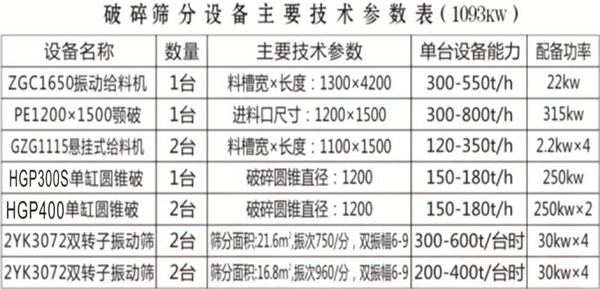 時(shí)產(chǎn)500-600噸硬巖骨料生產(chǎn)線方案平面布置圖(生產(chǎn)線總功率: 1370kW)